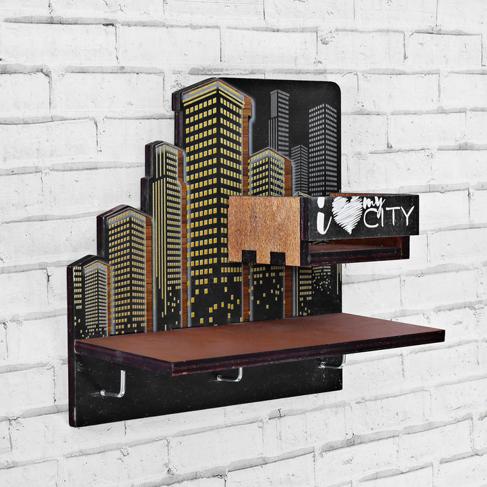 Крючки декоративные дерево с полочкой "Весна в Париже" 11,5х58х28 см