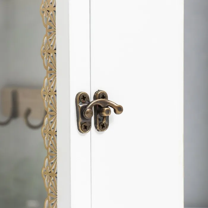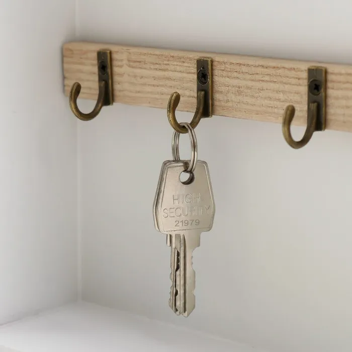 Ключница дерево 7 крючков "Дом. Узоры. Ключ" белая с золотом 22х8х30 см — Характеристики