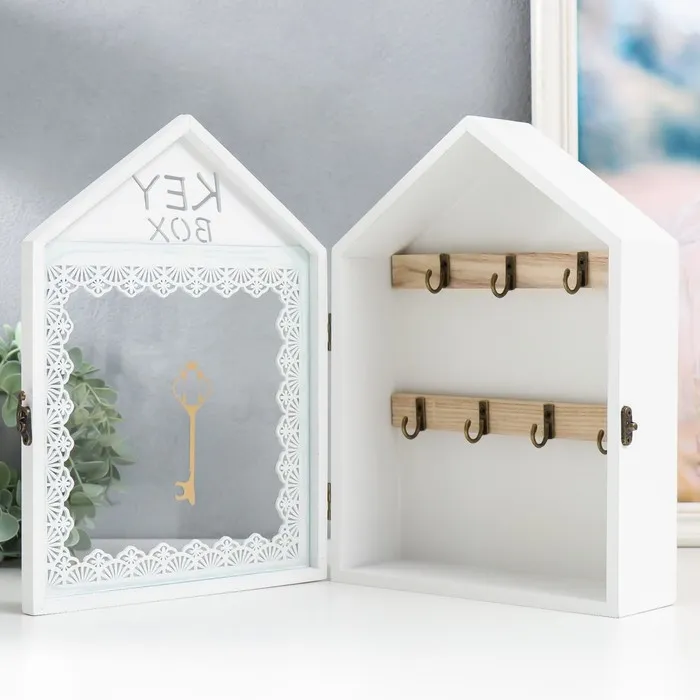 Ключница "Стеклянный замок с сердечками" дерево 6х16х24 см