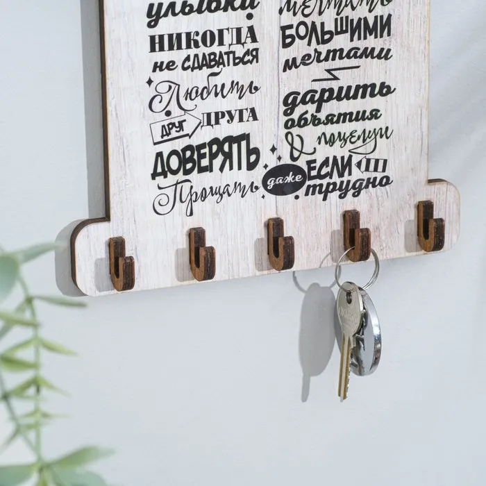 Ключница настенная, панно «Правила дома: Мы семья!», крючки декоративные