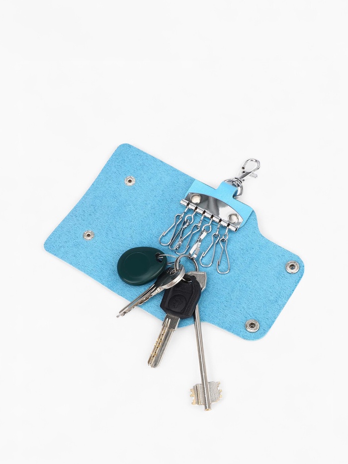 Ключница карманная на кнопках, 7 карабинов, размер 11×2×6.5 см, голубая — Характеристики