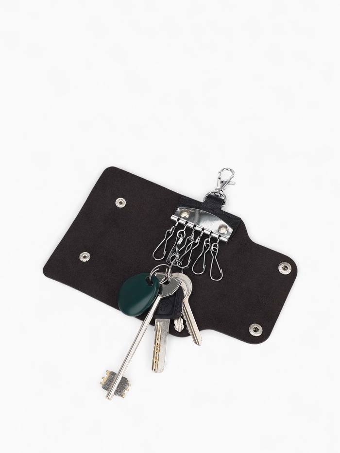 Внутри ключницы предусмотрено7 металлических карабинов для надежной фиксации ключей, а кнопки обеспечивает безопасность содержимого. Цвет добавляет изделию индивидуальности — оно легко сочетается с любыми аксессуарами и стилем одежды.
