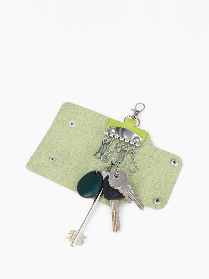 Ключница карманная на кнопках, длина 11 см, 7 карабинов, цвет салатовый — Характеристики