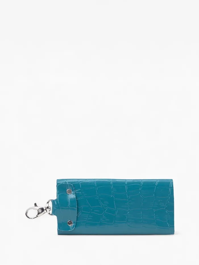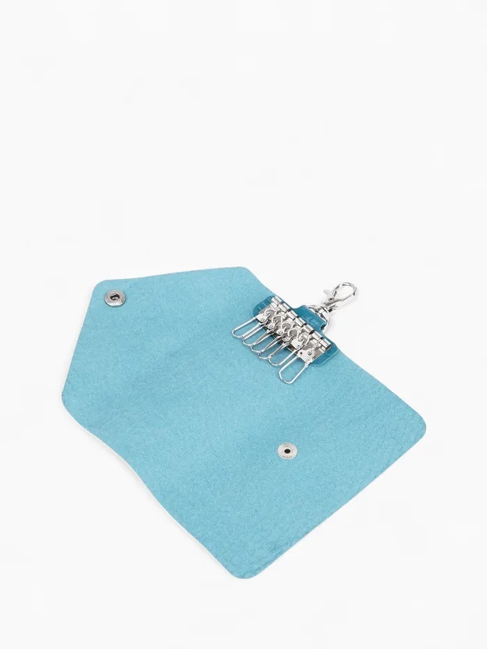 Внутри ключницы предусмотрены металлические карабины для надежной фиксации ключей, а кнопка обеспечивает безопасность содержимого. Цвет добавляет изделию индивидуальности — оно легко сочетается с любыми аксессуарами и стилем одежды.