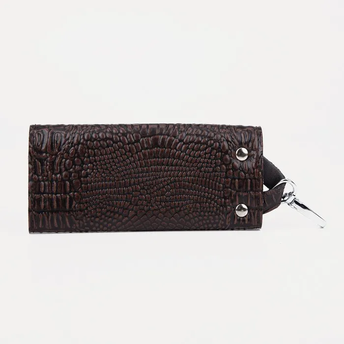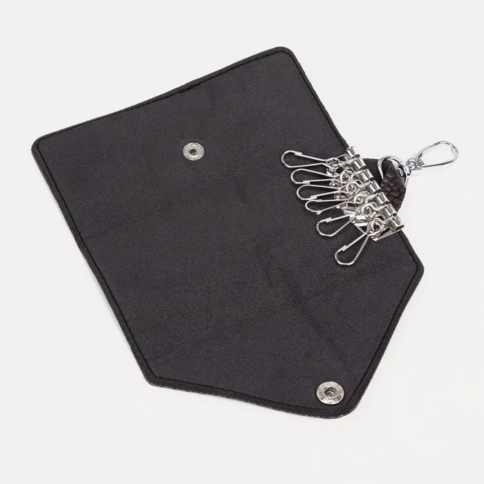 Ключница карманная на кнопке, длина 11 см, 7 карабинов, цвет коричневый — Характеристики