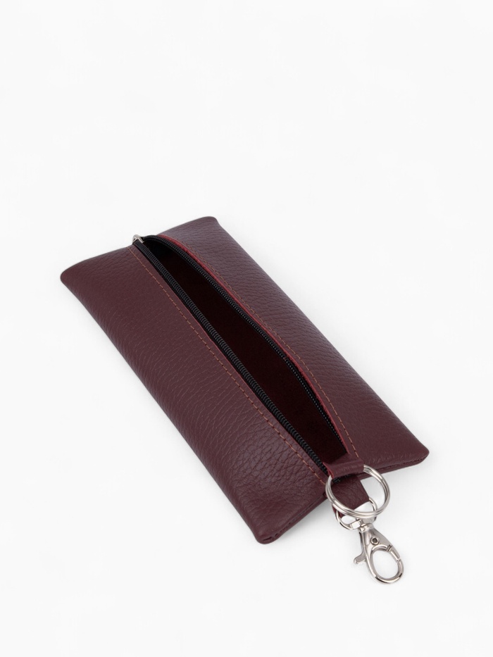 Ключница карманная на молнии, длина 17 см, кольцо, карабин, цвет бордовый — Характеристики