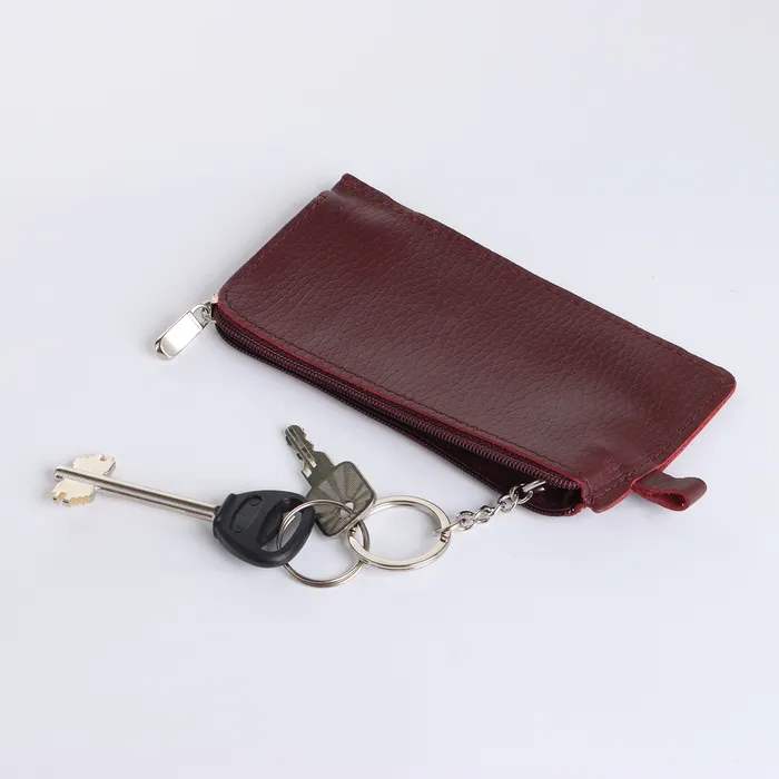 Ключница карманная на молнии TEXTURA, длина 14 см, кольцо, цвет бордовый — Характеристики