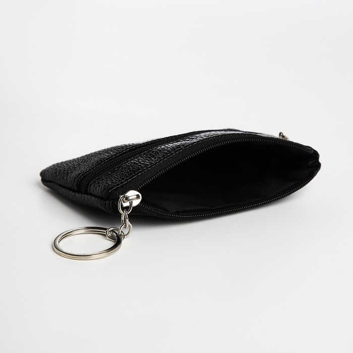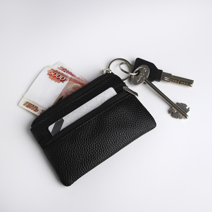 Ключница - кошелёк на молнии, длина 12 см, кольцо, цвет чёрный — Характеристики