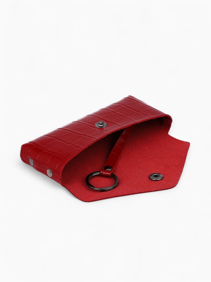 Ключница на кнопке TEXTURA, длина 15 см, металлическое кольцо, цвет красный — Характеристики