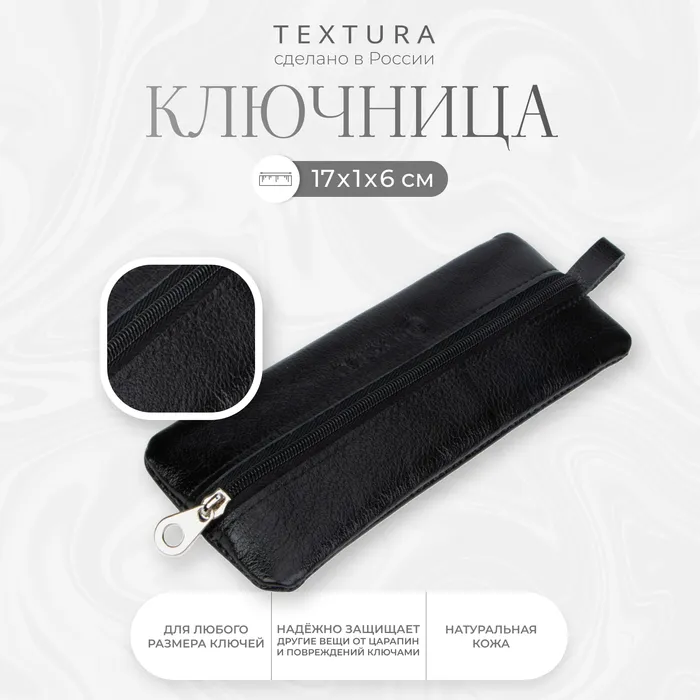 Ключница на молнии TEXTURA, длина 17 см, кольцо, цвет чёрный — Характеристики