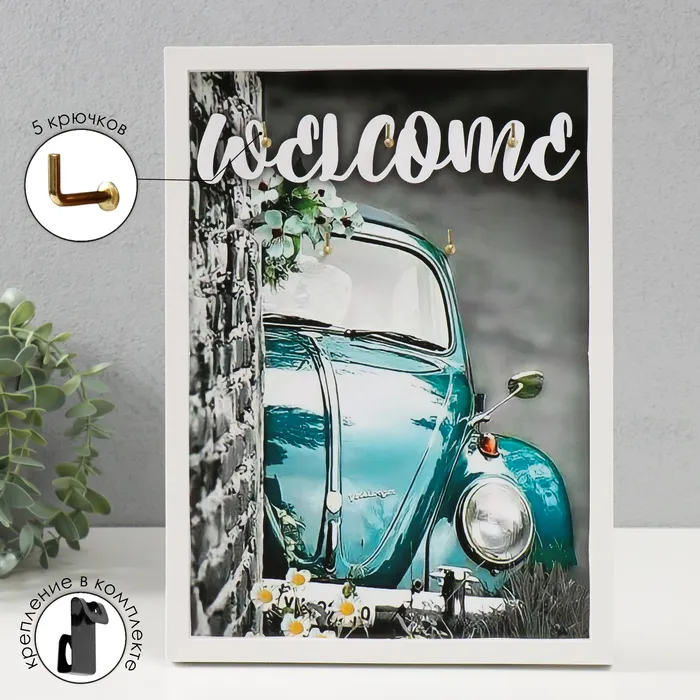 Ключница настенная декоративная «Машина», 5 крючков, панно, 23×32 см — Характеристики