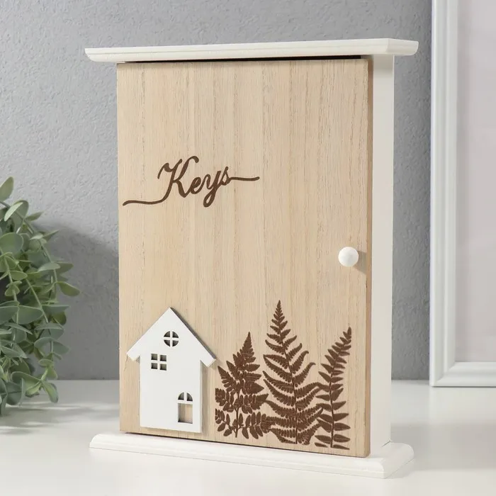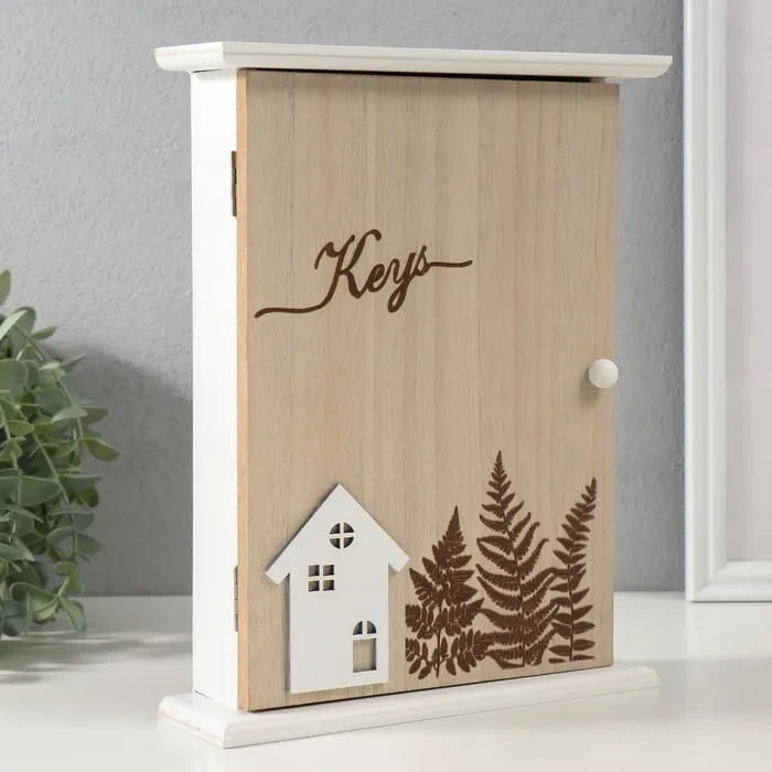 Ключница настенная «Дом и папоротник», дерево, 5 крючков, 6×20×25.8 см — Характеристики