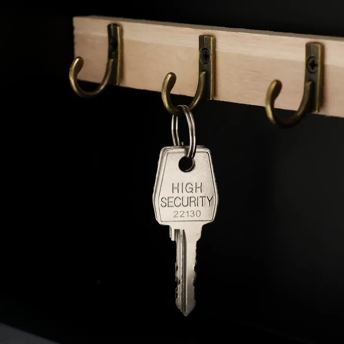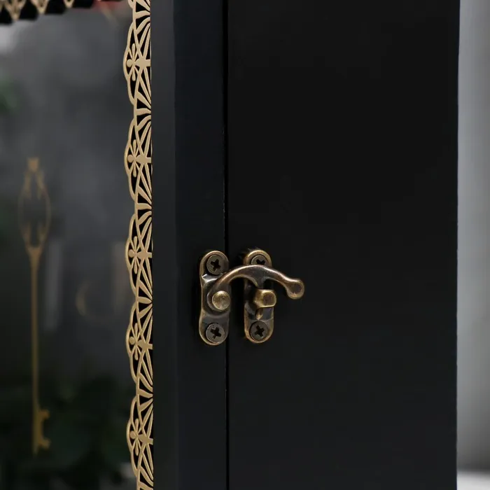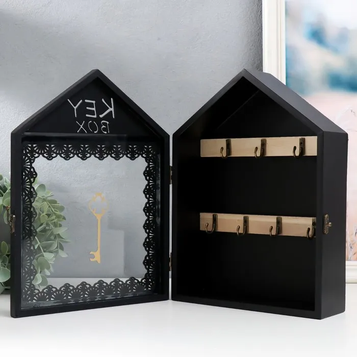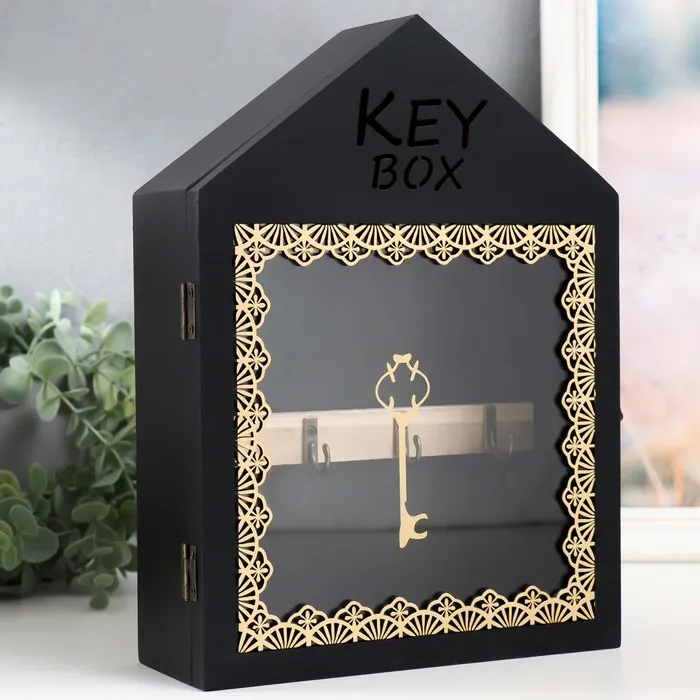 Ключница настенная «Дом. Узоры. Ключ», дерево, 7 крючков, чёрная с золотом, 22×8×30 см — Характеристики