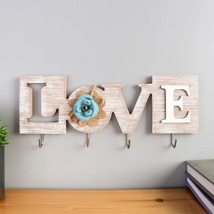 Крючки декоративные дерево "Надпись с цветком" 11,5х29,5х2,5 см