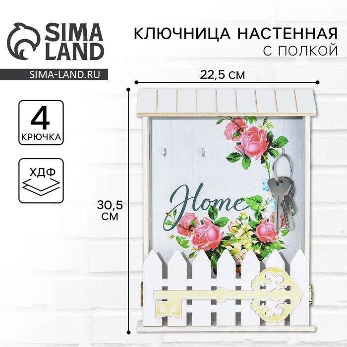 Ключница настенная «Home», цветы, 22,5 х 30,5 х 5,7 см. — Характеристики