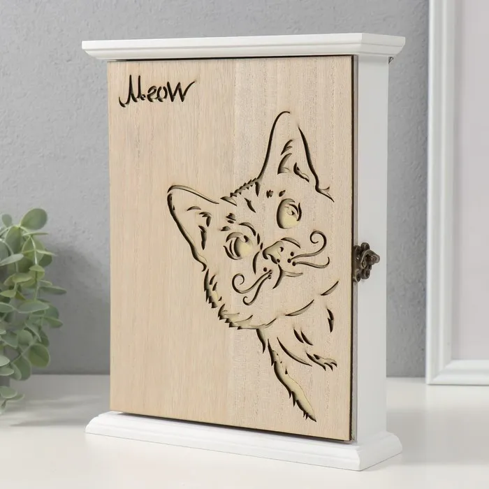 Ключница настенная «Котик», дерево, 6 крючков, 26.5×20.8×6.3 см — Характеристики