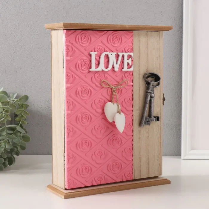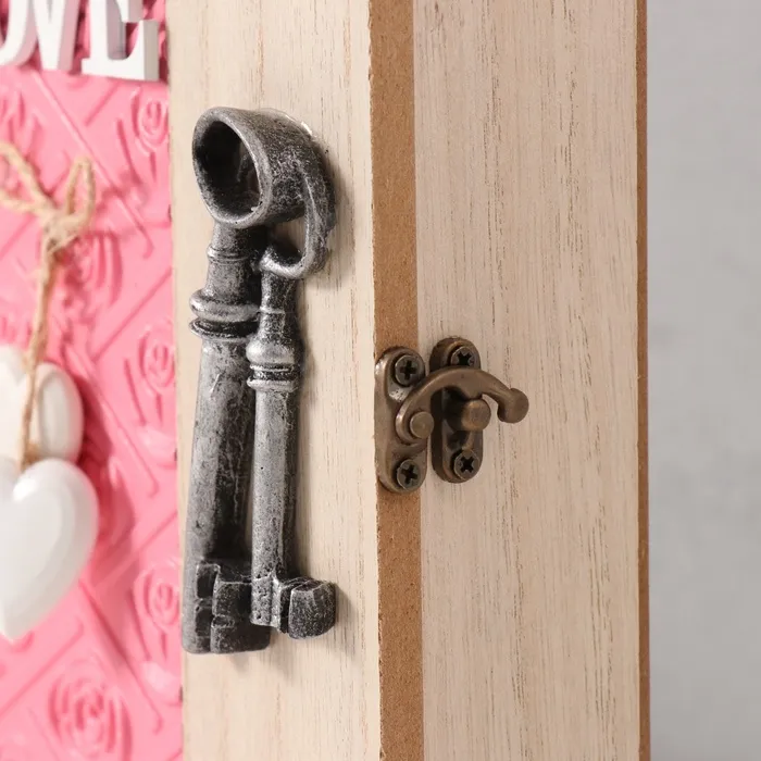 Ключница настенная «Круги. Ключи и сердце», дерево, 6 крючков, розовый 6.5×20×26.5 см — Характеристики