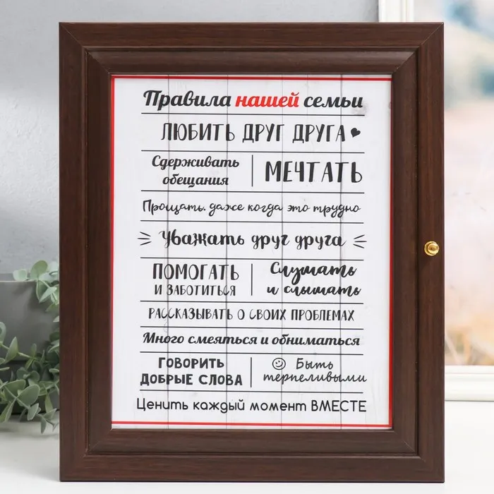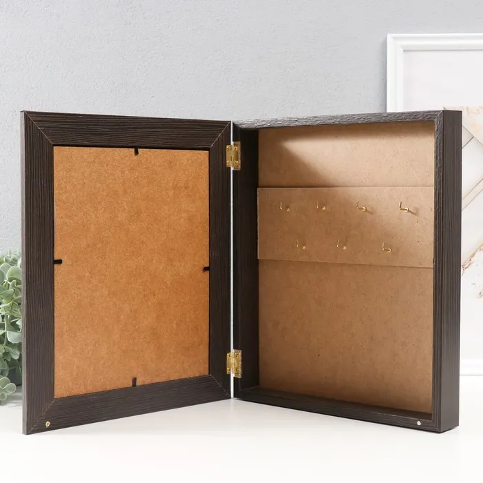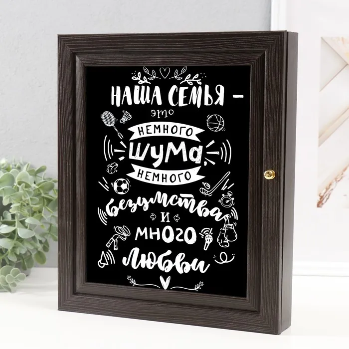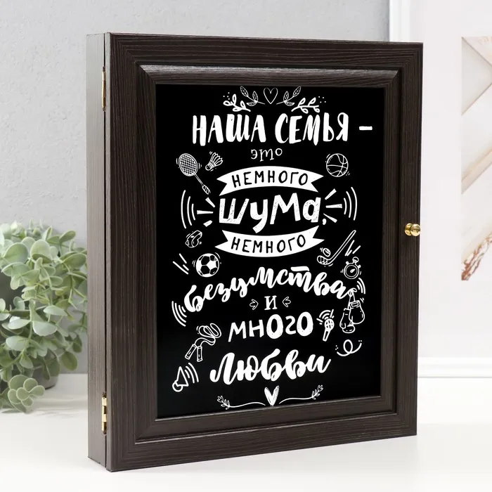 Надпись «Наша семья» и мягкие оттенки венге создают уют, превращая функциональный аксессуар в элемент декора. Семь крючков вместят ключи от дома, машины или дачи, а закрытый корпус надёжно скроет их от посторонних глаз.