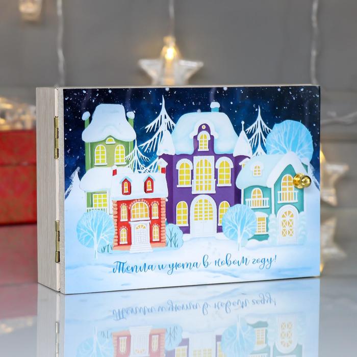 Ключница настенная «Новогодние домики, ночь», панно декоративное, 17×12 см — Характеристики
