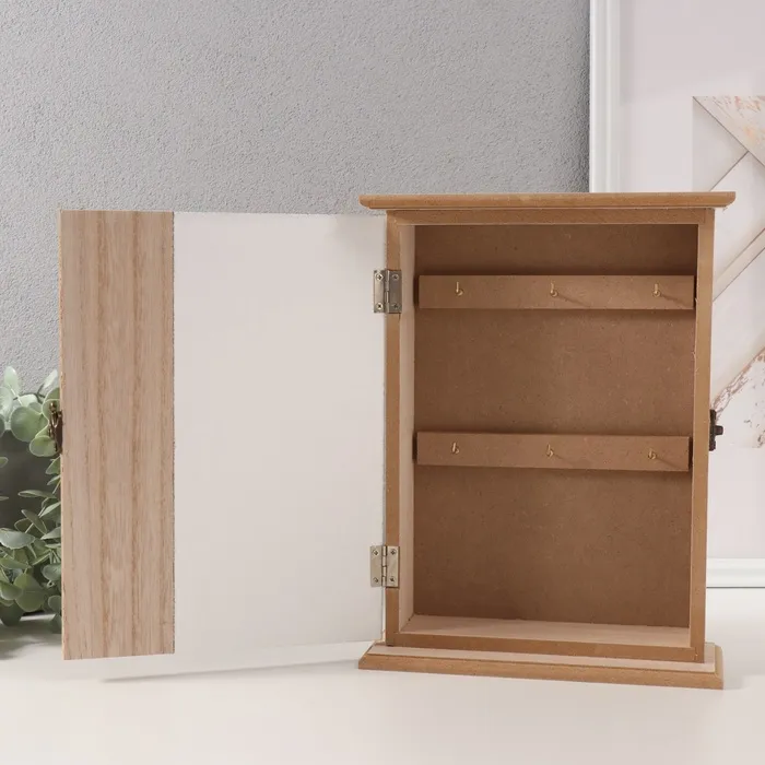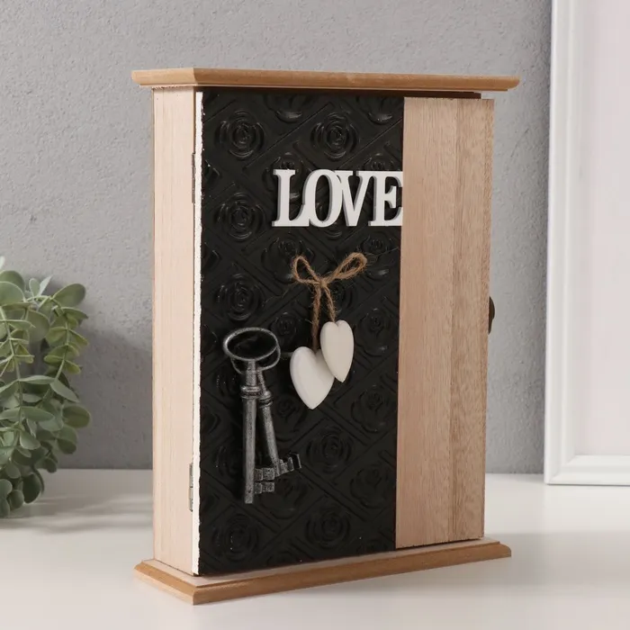 Ключница настенная «Отпечаток листьев. Ключи и сердце», дерево, 6 крючков, чёрный, 6.5×20×26.5 см — Характеристики