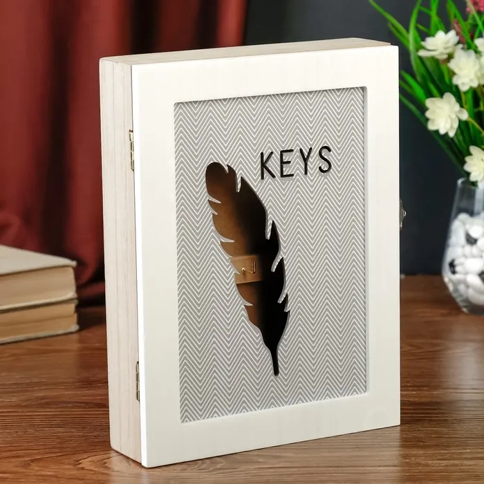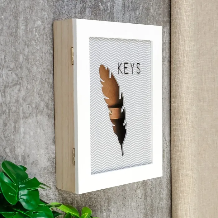 Ключница настенная «Пёрышко и зигзаг», дерево, 6 крючков, 26×5.5×19.5 см — Характеристики