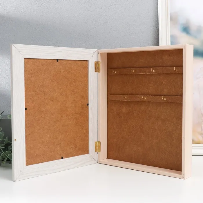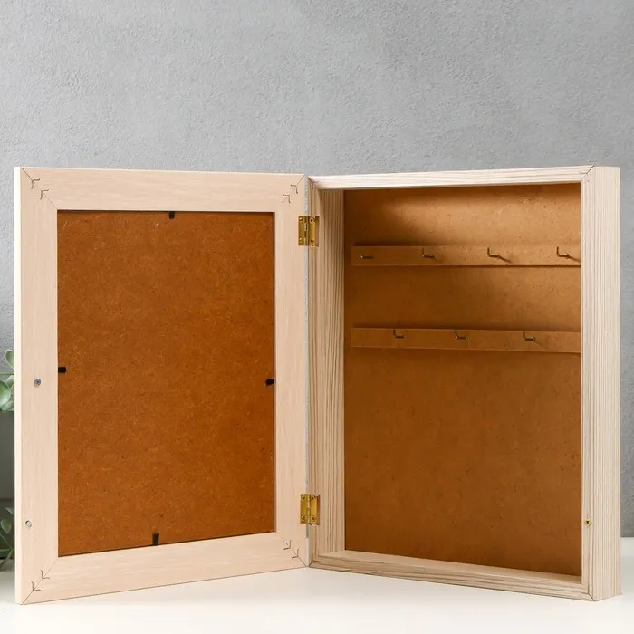 Изделие изготовлено из высококачественного МДФ, что гарантирует его прочность и долговечность при сохранении легкости монтажа. Размеры 26×31×6 см делают её компактной, но достаточно вместительной для хранения ключей, очков, брелоков и других мелочей. Закрытый дизайн защищает содержимое от пыли, а молочный цвет багета создает нейтральный фон, который гармонично сочетается с любым стилем интерьера. Размер изображения 20×25 см привлекает внимание и подчеркивает индивидуальность вашего дома.