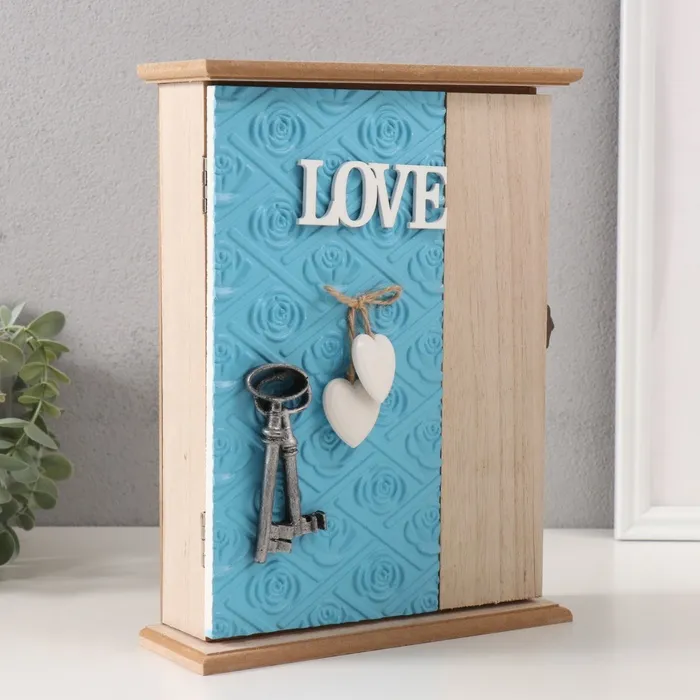 Ключница настенная «Роза. Ключи и сердце», дерево, 6 крючков, голубой 6.5×20×26.5 см — Характеристики
