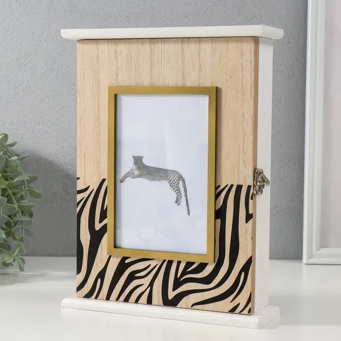 Ключница настенная с фоторамкой 10×15 см «Зебра», дерево, 5 крючков, 6×20×25.8 см — Характеристики