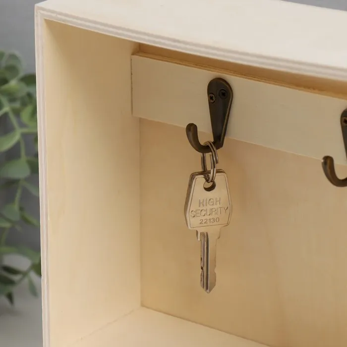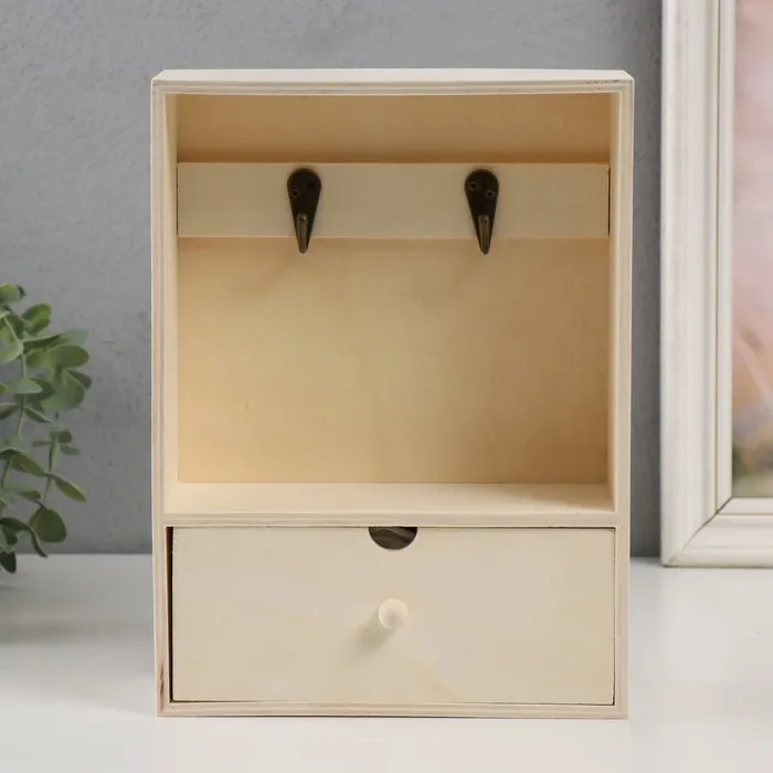 Ключница настенная с ящичком «Прямоугольная», дерево, 2 крючка, заготовка для творчества, 18.5×7×25 см — Характеристики