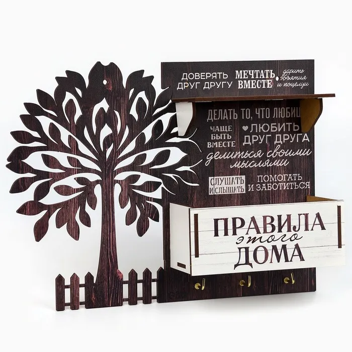 Ключница настенная с полкой «Правила дома».