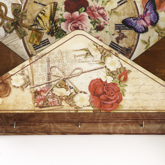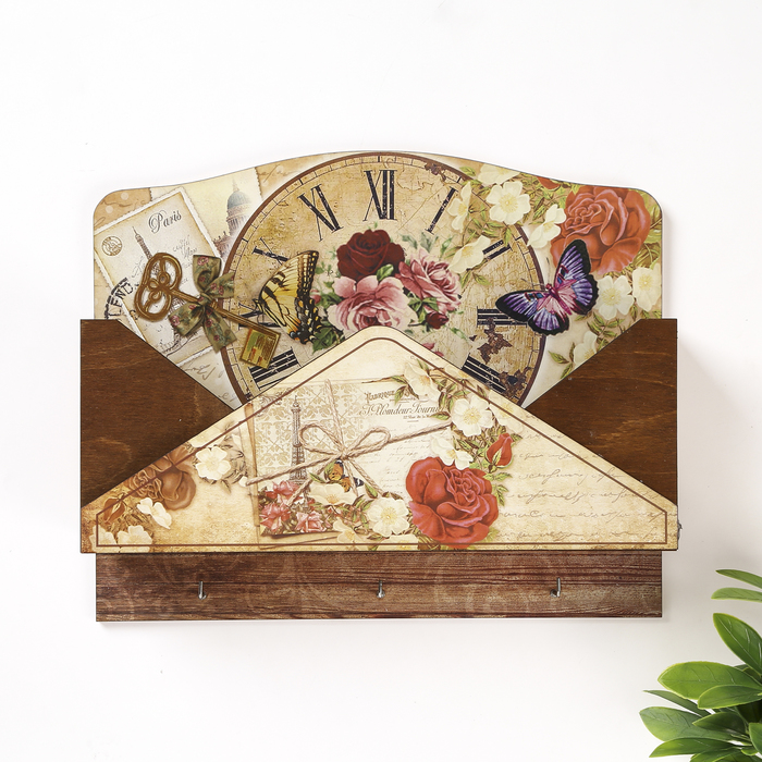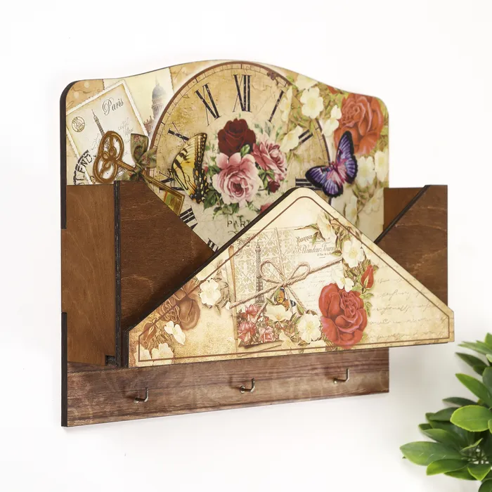 Ключница настенная с выпуском и кармашком «Часики», крючки декоративные, 22×26.5×6 см — Характеристики