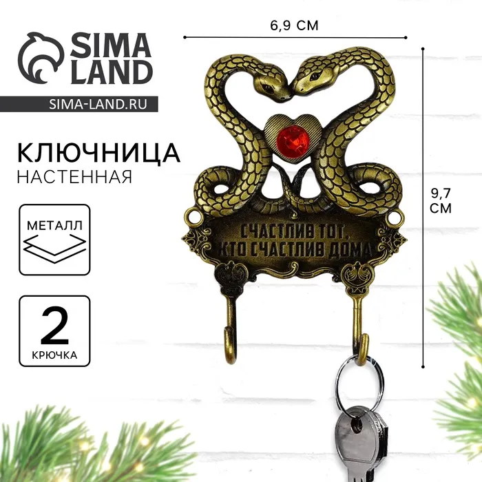 Ключница настенная «Счастлив тот, кто счастлив дома», 6,9 х 9,7 х 1,3