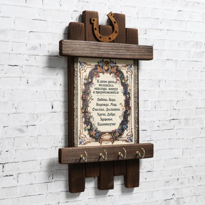 Ключница настенная «Свиток с подковой. В этом доме поселились», панно декоративное, 36×20 см — Характеристики