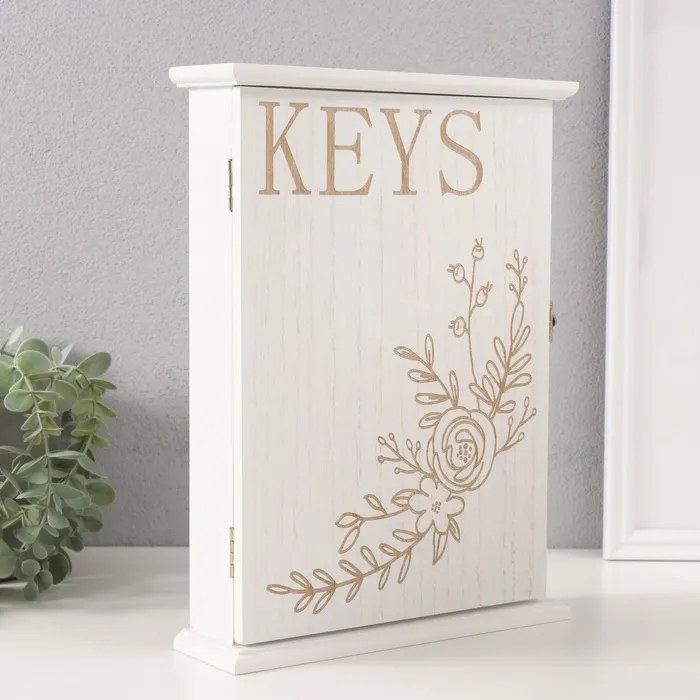 Ключница настенная «Веточка цветочная», дерево, 6 крючков, состаренный белый, 6×22×30 см — Характеристики