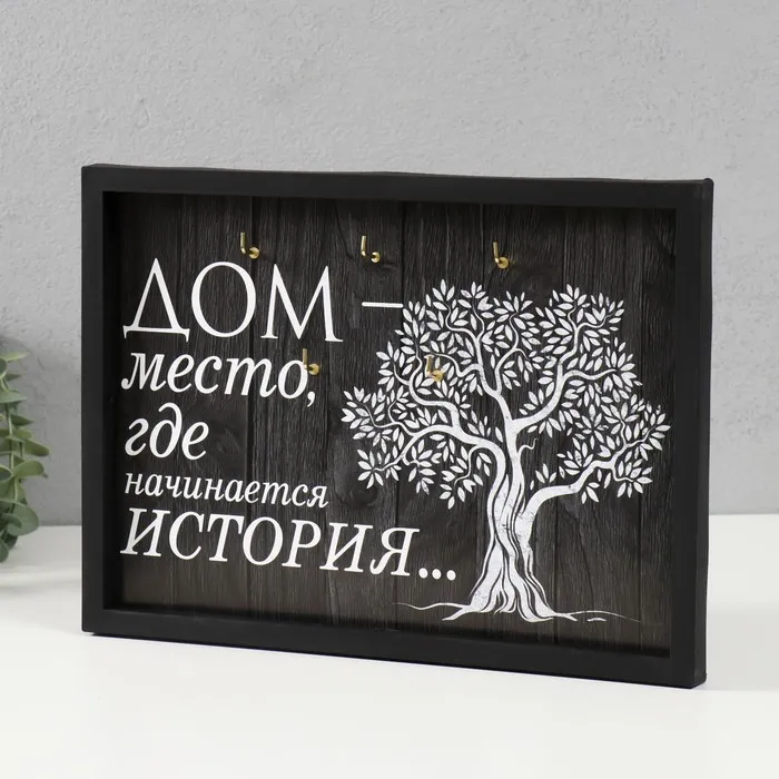 Ключница настенная, панно «Правила дома: Мы семья!», крючки декоративные