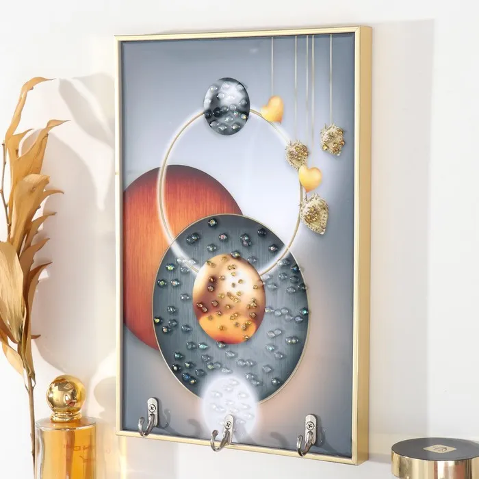 Ключница пластик, МДФ 3 крючка "Абстракция. Вечная любовь" стразы, золото 29х1,8х19 см — Характеристики