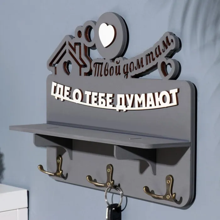 Ключница с полкой «Твой дом», серый цвет, 28×23×7.5 см — Характеристики