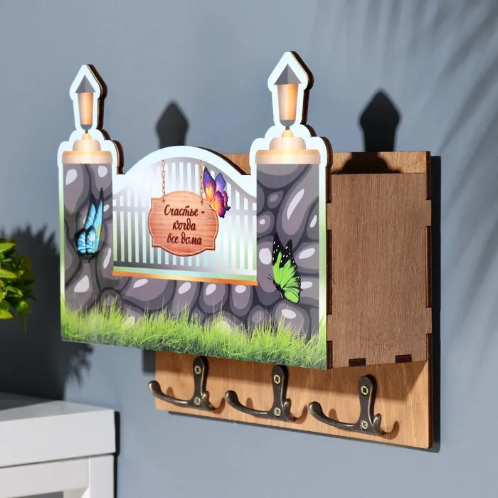 Крючки декоративные «Уходя из дома», ключница настенная, панно, 27×22 см