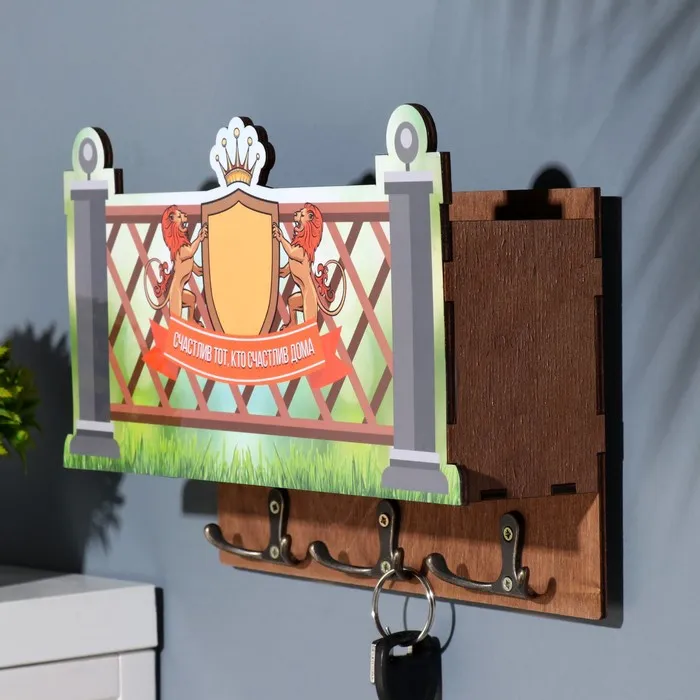Ключница «Счастлив тот, кто счастлив дома» 3 отделения, 24×19×6 см — Характеристики