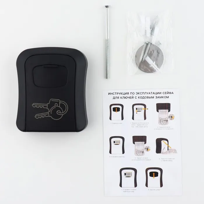 Сейф для хранения ключей с кодовым замком - это удобное, практичное и безопасное решение для вашего дома. Система хранения для ключей представляет собой мини шкафчик с пластиковым корпусом и крышкой, на которой находится рычаг и 4 механизма с цифрами, для создания кода. Ключница на стену подходит для дома, гаража, дачи и подъезда. Ключница может служить как гаражный замок или как ключница для дома. Сейф настенный с кодовым замком имеет 10000 комбинаций, которые вы сможете установить согласно инструкции. Мини кейс можно положить до 5 средних ключей, ключница с замком находится под защитой кода, поэтому все ваши двери и хранимые вещи будут в безопасности.