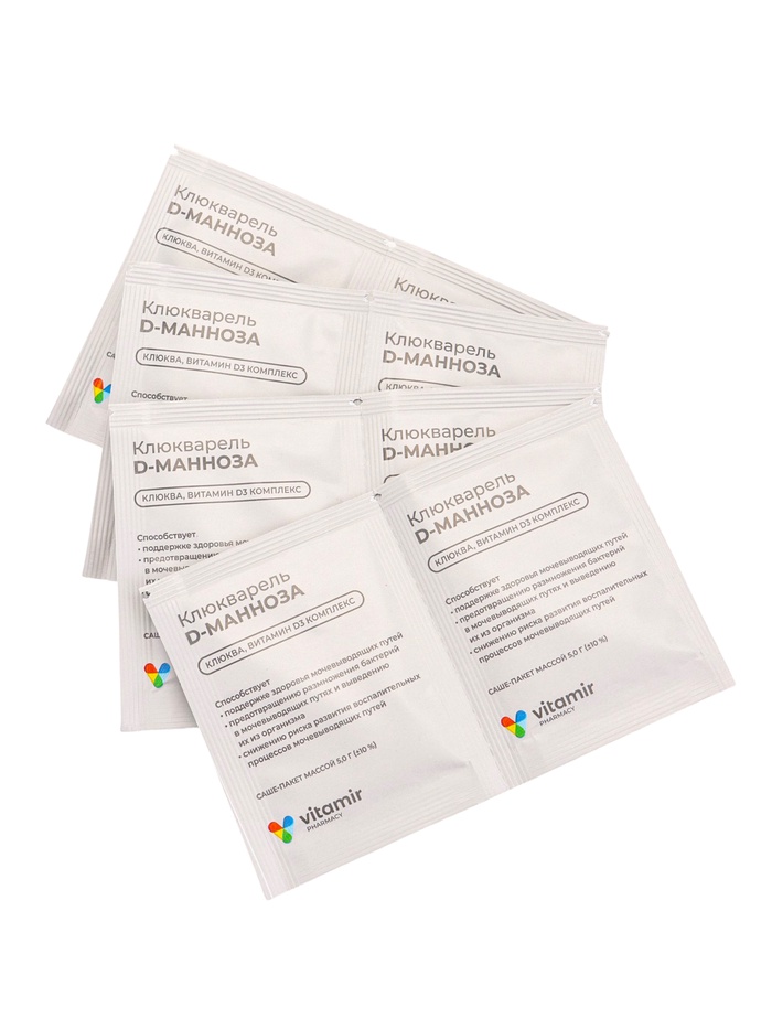 - Натуральные компоненты. Препарат содержит экстракт клюквы и Д-маннозу — безопасные и эффективные вещества для здоровья мочевыводящей системы.