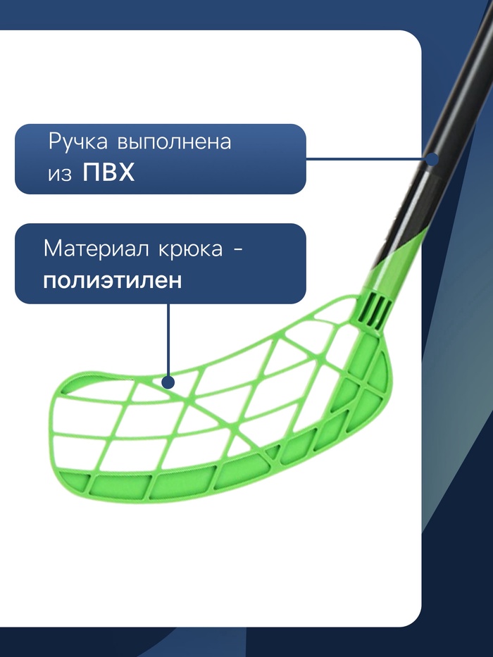 Клюшка для флорбола предназначена для игр и тренировок с детьми младшего и среднего школьного возраста. Снаряд имеет прямой универсальный крюк и подходит для левшей и правшей. Длина клюшки составляет 85 см, длина ручки - 65 см, длина крюка - 20 см. Рекомендуемый рост игрока 100-120 см.