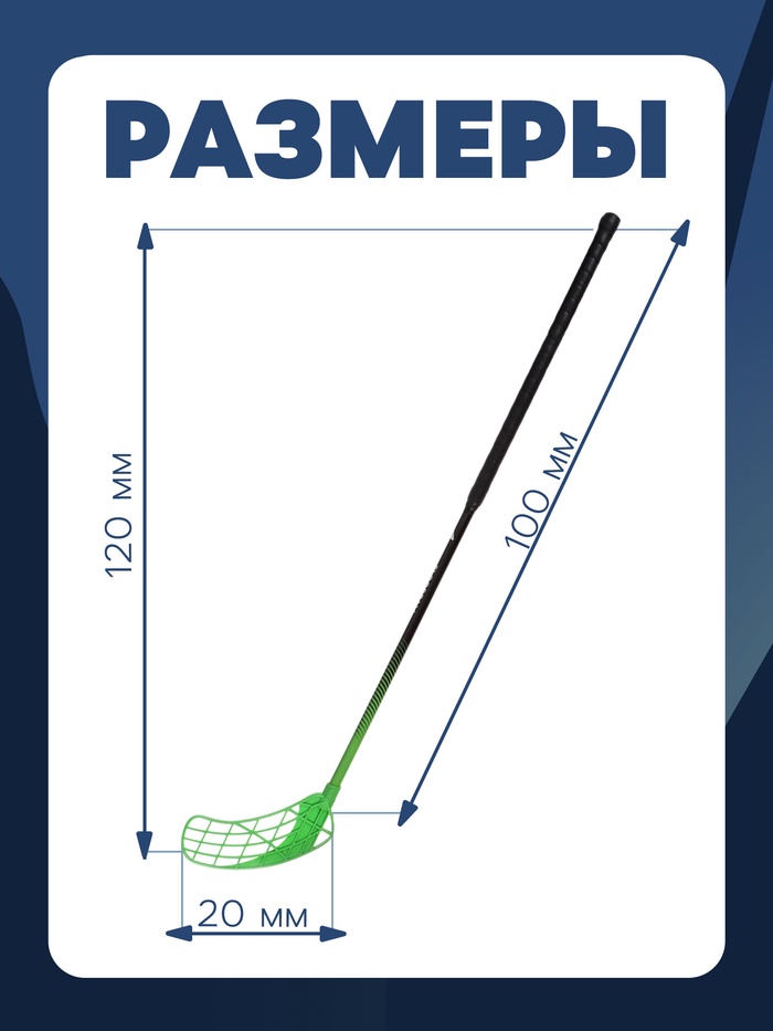 Клюшка для флорбола предназначена для любительских игр и тренировок новичков. Снаряд имеет крюк под левый хват. Длина клюшки составляет 120 см, длина ручки - 100 см, длина крюка - 20 см. Рекомендуемый рост игрока 175–185 см.