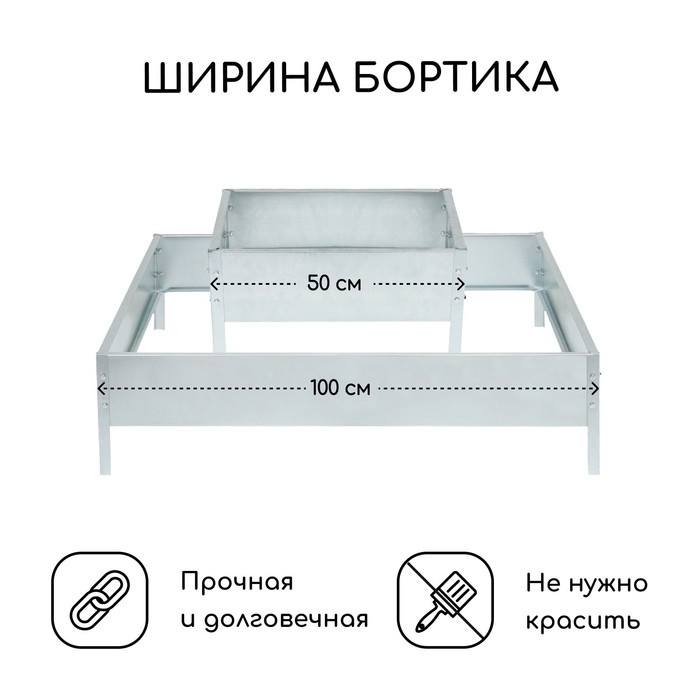 Клумба оцинкованная, 2 яруса, 50 × 50 см, 100 × 100 см, «Квадро», Greengo — Характеристики