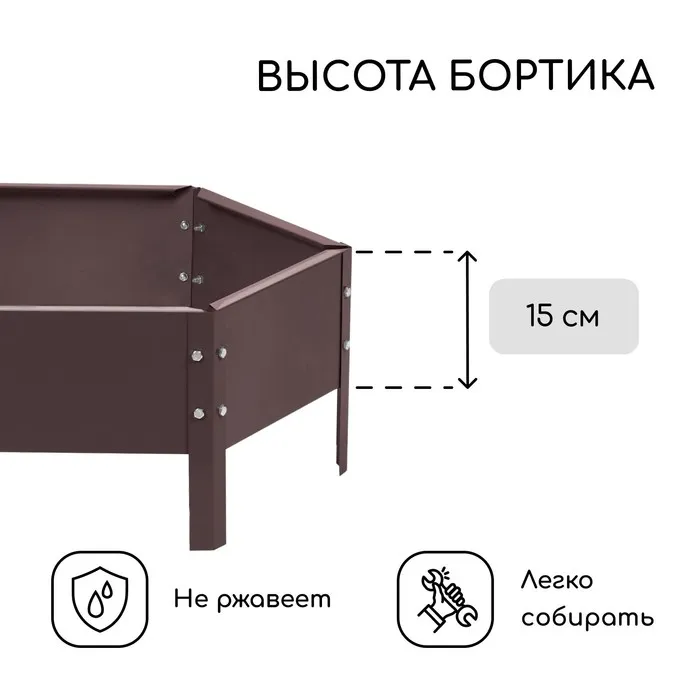 Клумба оцинкованная, d=60 см, высота бортика 15 см, коричневая, Greengo — Характеристики