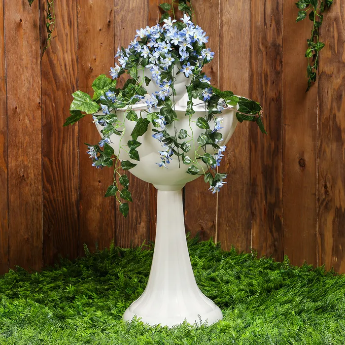 Двухъярусная пластиковая клумба «Водопад» станет функциональным и стильным решением для любителей растений. Этот вертикальный сад позволит разместить больше цветов и зелени на ограниченном пространстве, создавая эффект водопада из растений. Изготовленная из пластика, она устойчива к погодным условиям, что делает её подходящей для использования как в помещении, так и на открытом воздухе.