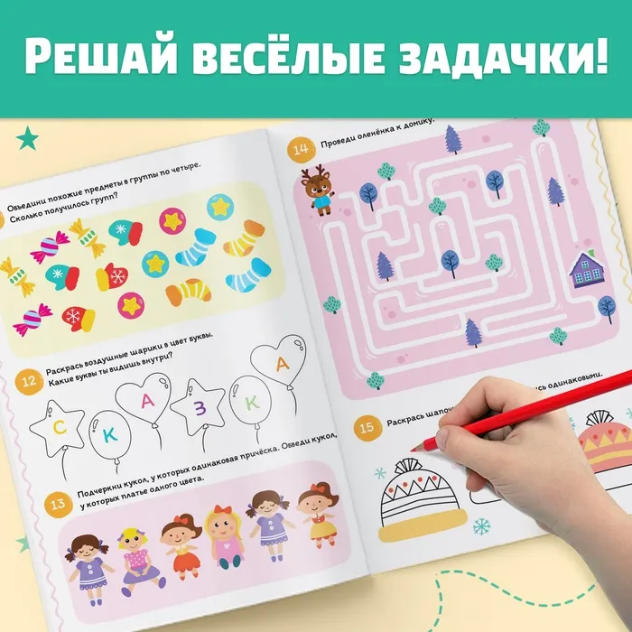 Книга «100 новогодних задачек» — это не просто сборник упражнений, а волшебное путешествие в мир зимних праздников для детей от 3 лет.