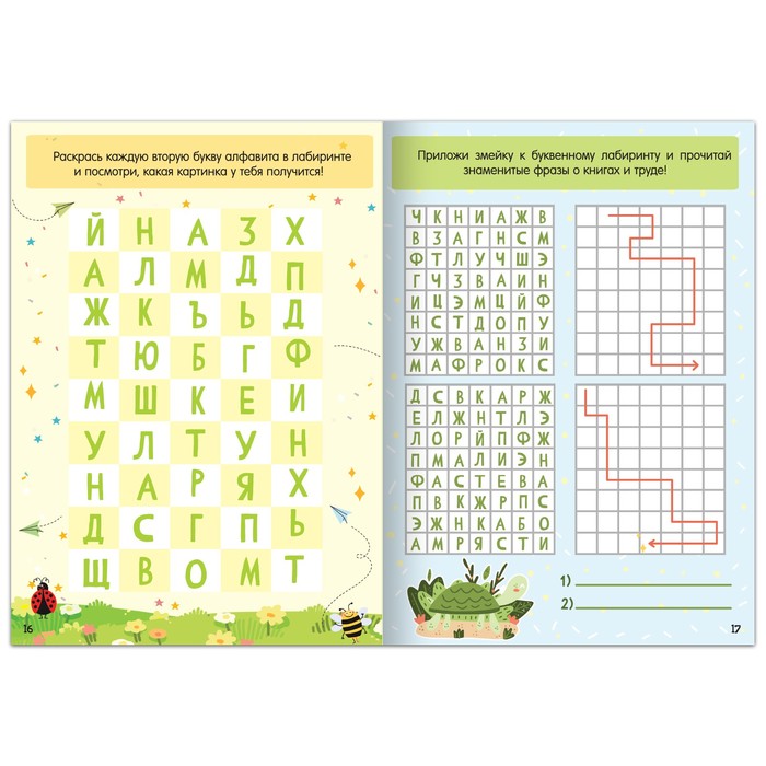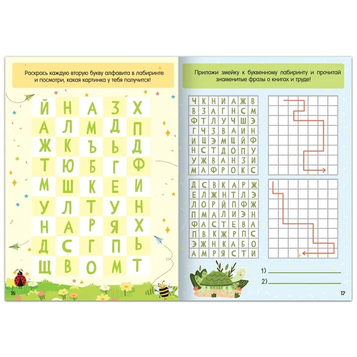 Книга-игра «Буквенные лабиринты» создана специально для любителей головоломок. В ней собраны задания, которые помогут ребёнку отработать навыки чтения.