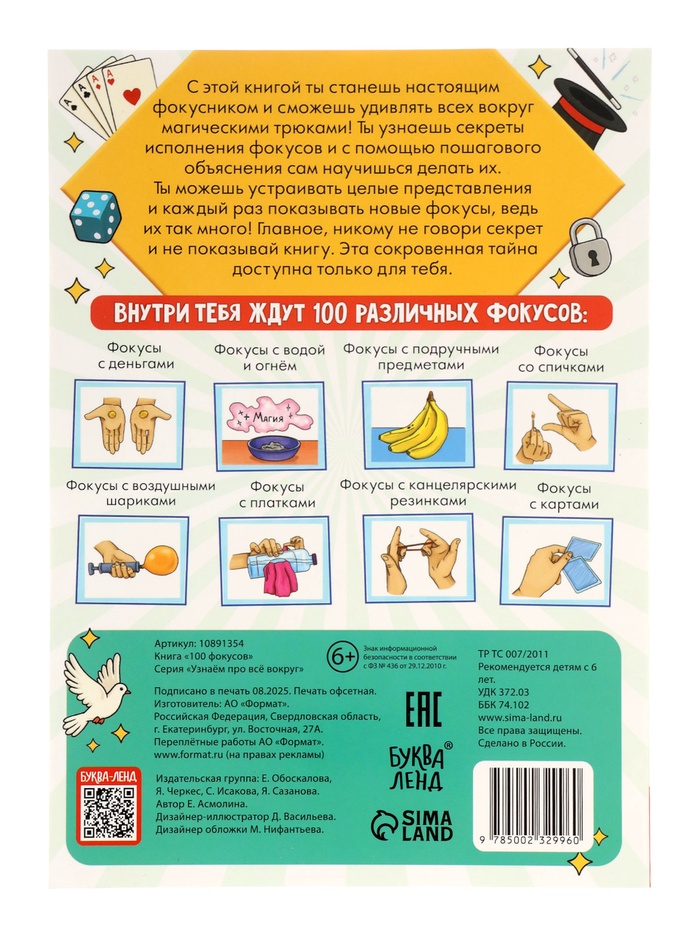 Книга «100 фокусов» — это не просто сборник трюков, а первый шаг к развитию уверенности и креативности. Подарите ребёнку возможность учиться с удовольствием и становиться настоящим волшебником!