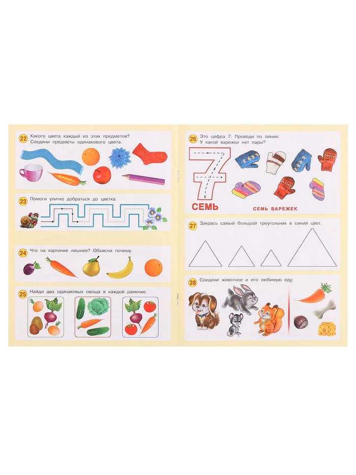 - Задания расположены по принципу «от простого к сложному», что помогает ребёнку постепенно осваивать новые навыки.